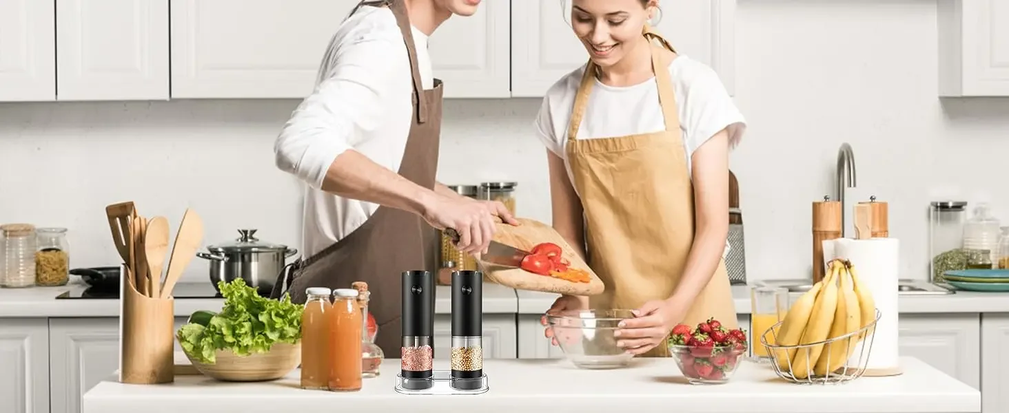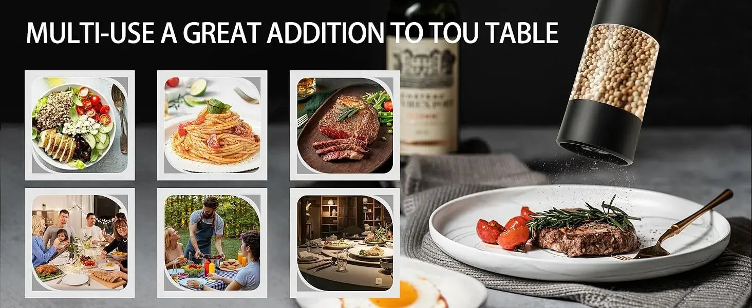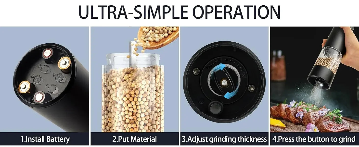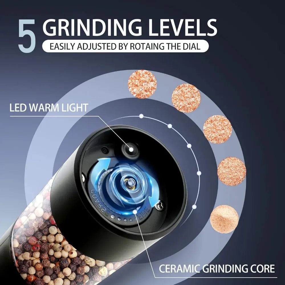 Electric Salt and Pepper Grinder Set, Automatic Mill, Adjustable Coarseness, Convenient One-Hand Operation